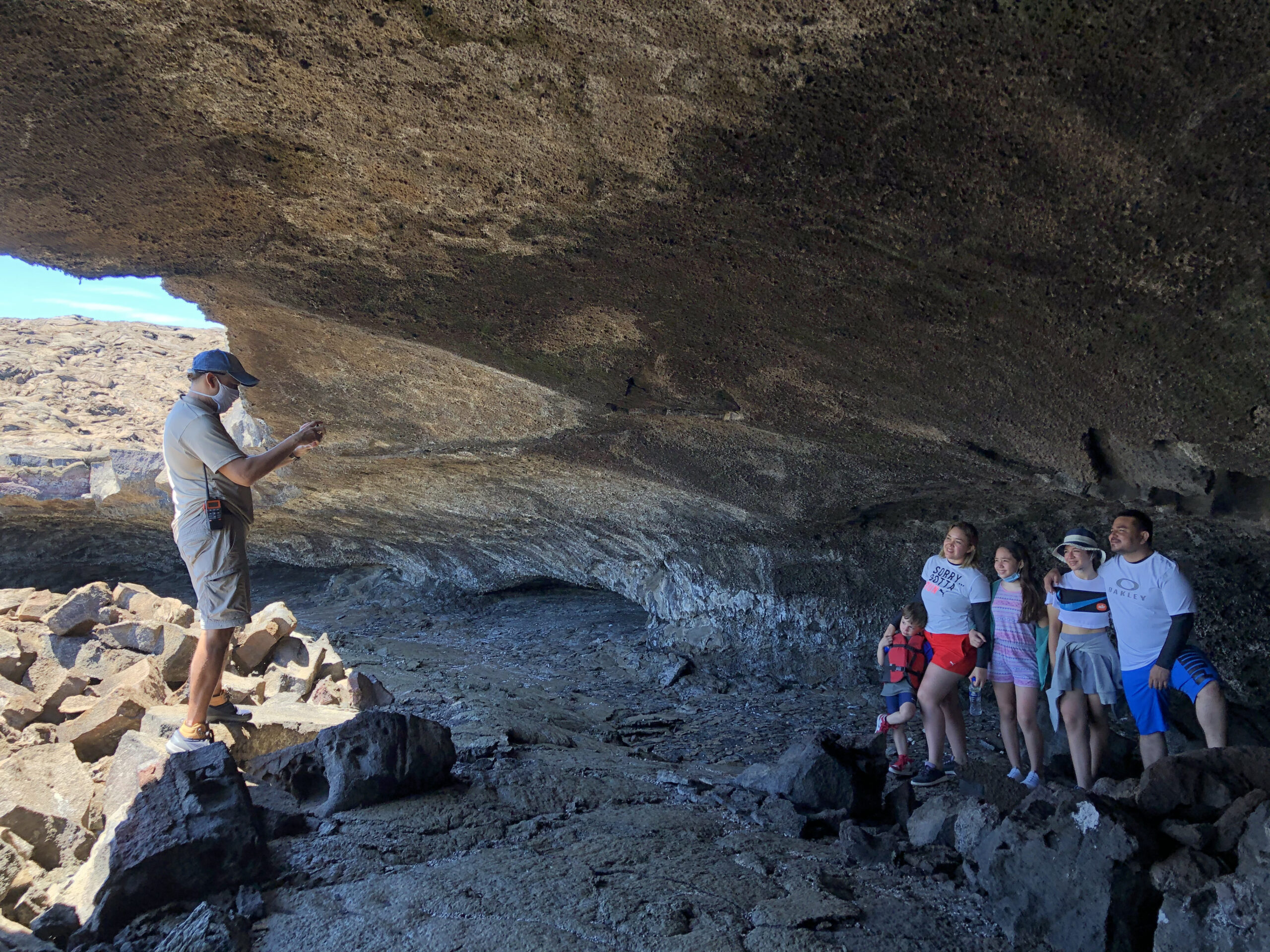 Llegada en zodiac y caminata de aproximadamente 1 hora y 30 minutos. Exploraremos cuevas, cavernas y tubos de lava acompañados de fauna local. -