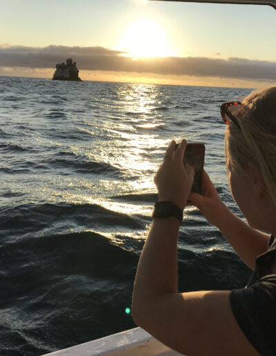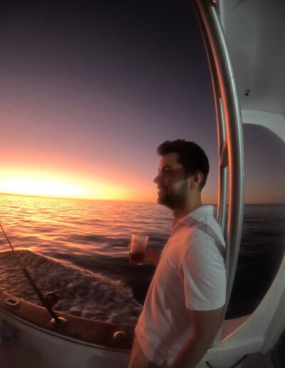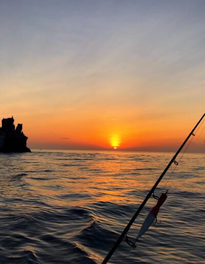 Disfruta de una tarde inolvidable en Galápagos, combinando pesca ligera, vistas impresionantes del León Dormido y la magia de la puesta de sol, acompañada de vino, snacks y buena música.
